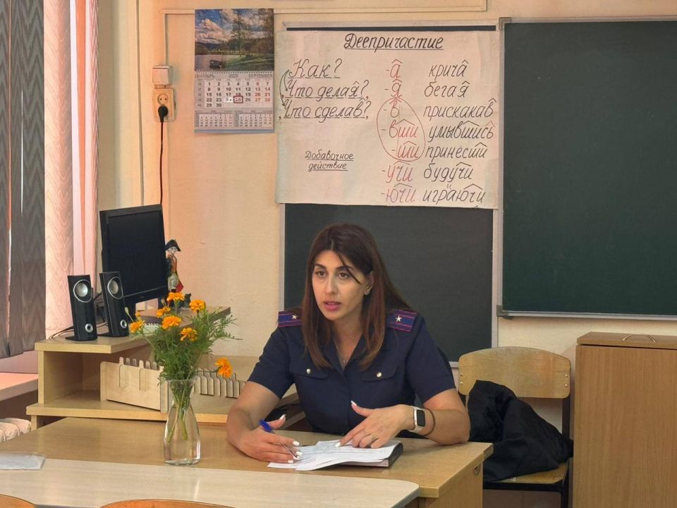 Старший инспектор следственного управления Следственного комитета Российской Федерации по Калининградской области (по кадрам) майор юстиции Наира Эдиковна Солоян в новом учебном году начала курс лекций с кадетами 10 профильного кадетского класса...