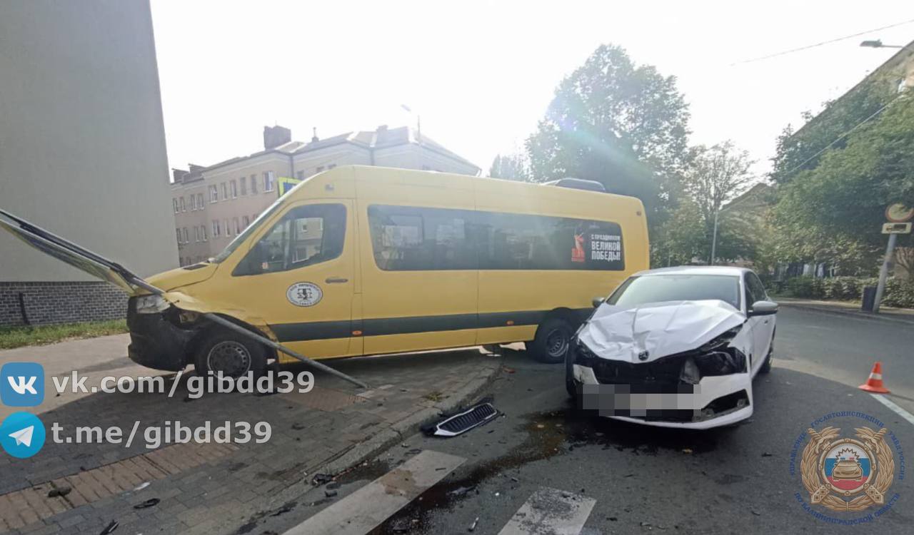 По оперативной информации, 04.10.2025 около 10:57 в городе Калининграде на пересечении улиц Репина - Брамса произошло столкновение легкового автомобиля и маршрутного такси.