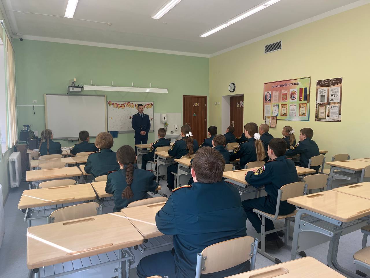 Заместитель прокурора Краснознаменского района Иван Арутюнов принял участие в проведении классного часа с учащимися кадетского класса МЧС МАОУ СОШ №1 г. Краснознаменска.