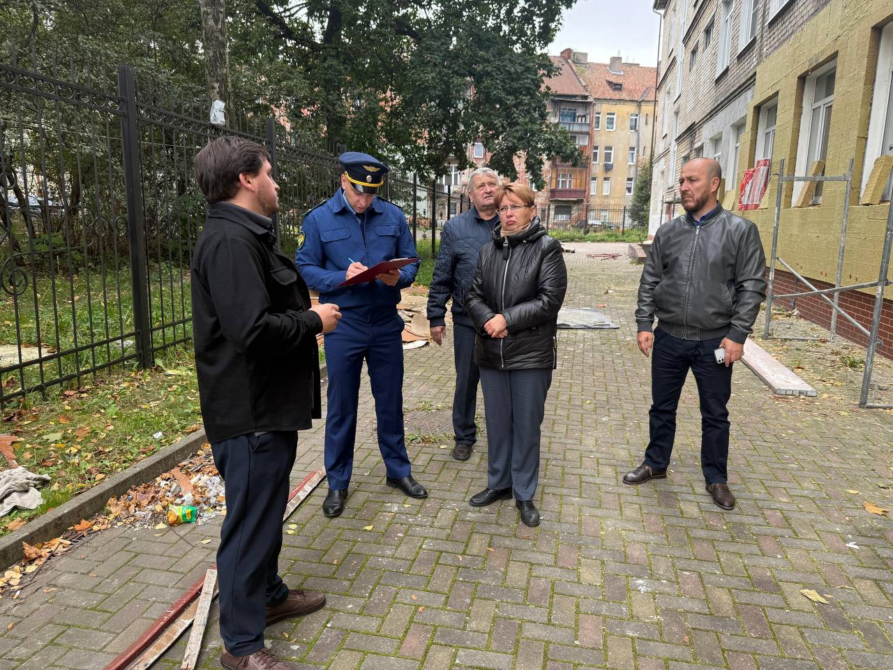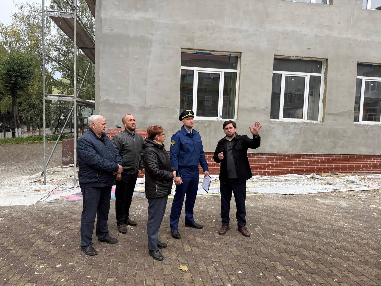 Прокурор города Черняховска Максим Потапов с выездом проверил ход капитального ремонта фасада лицея №7