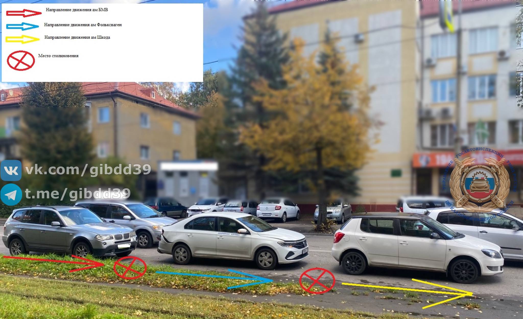 13.10.2025 в 09:50 в г. Калининграде на ул. Аллея Смелых дома № 38-54, 59-летний водитель автомобиля марки «БМВ» из-за несоблюдения безопасной дистанции совершил столкновение с впереди остановившимся автомобилем марки «VOLKSWAGEN», под управлением 29-летнего водителя, который после столкновения откинуло на впереди движущийся автомобиль марки «SKODA», под управлением 24-летнего водителя.