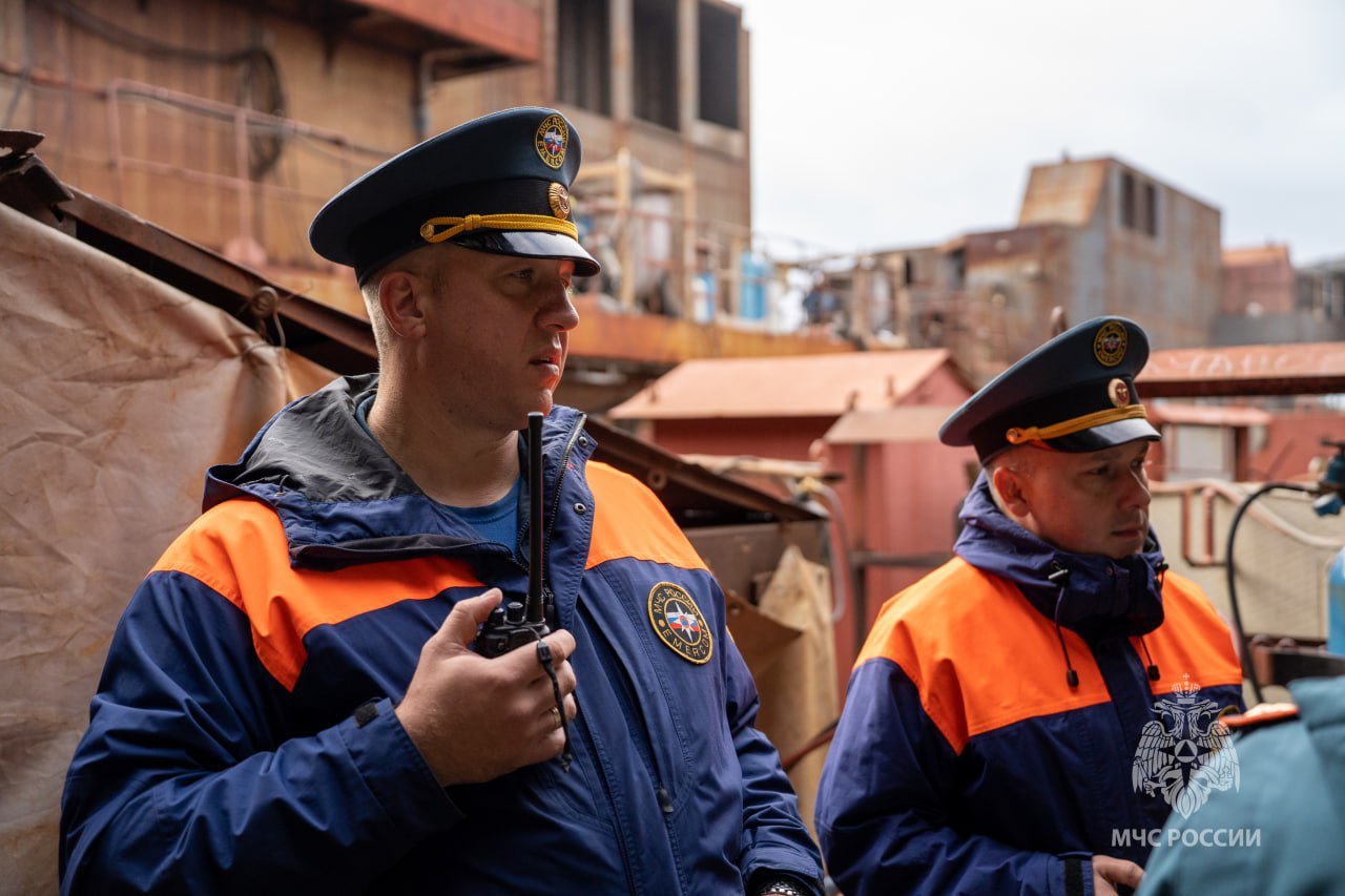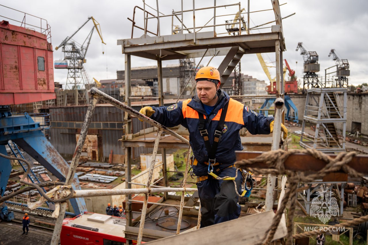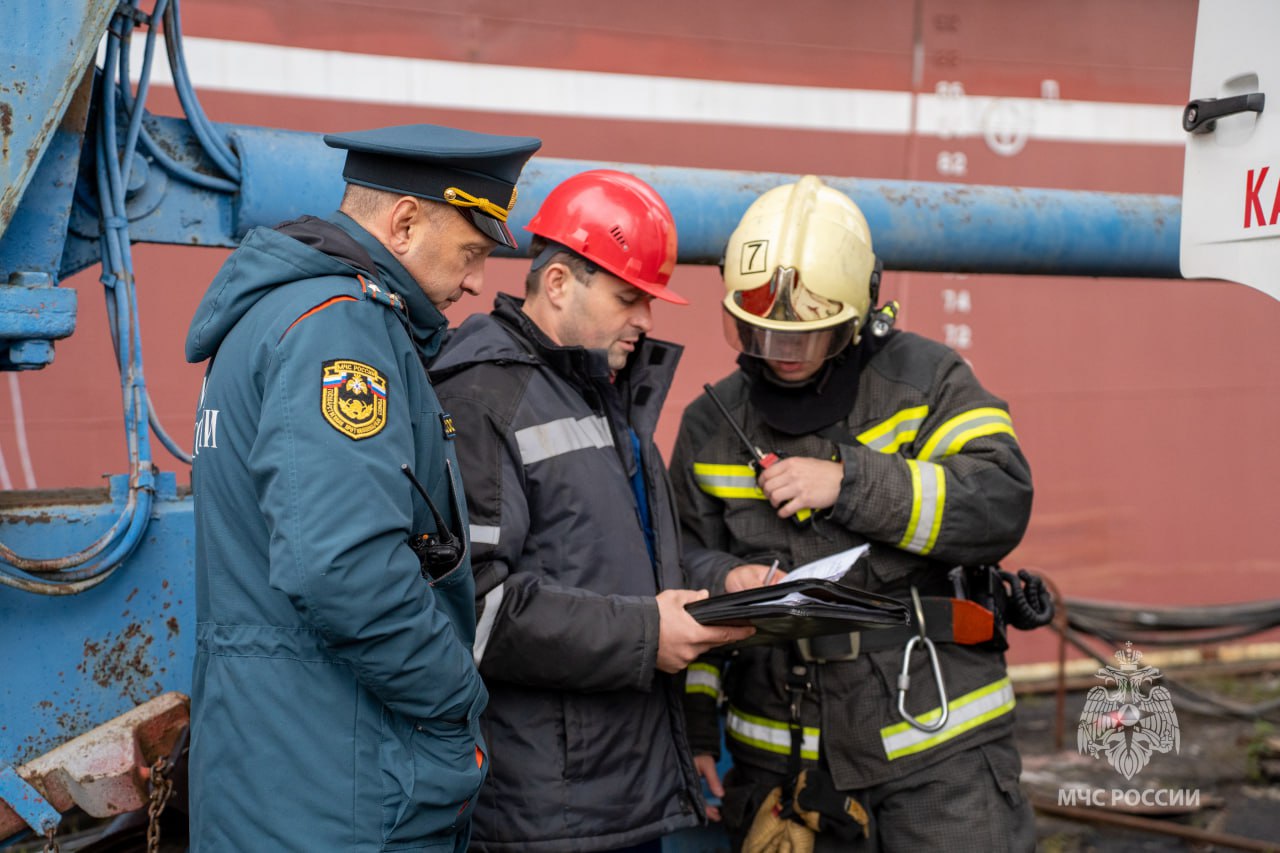 В Калининграде на территории Прибалтийского судостроительного завода «Янтарь» прошли тренировочные пожарно-тактические учения