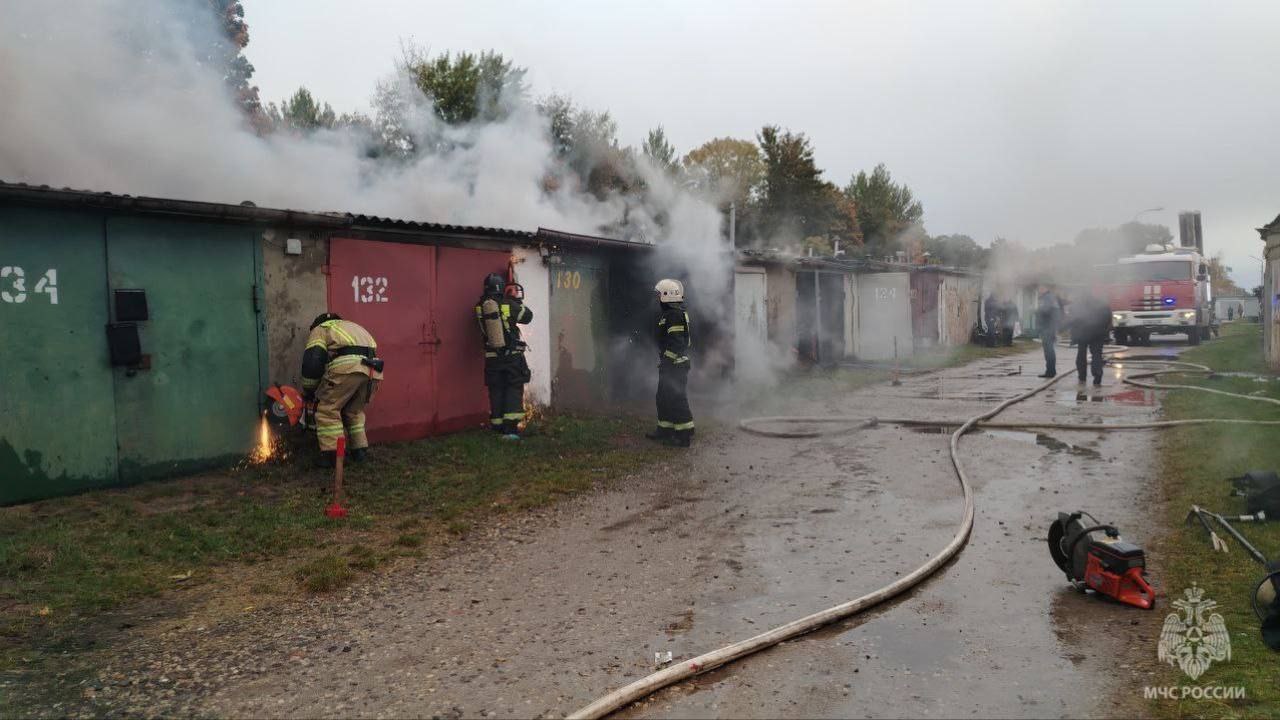 На улице Донского в группе кирпичных гаражей горело восемь боксов, внутри них огнем уничтожено две моторные лодки, мотоблоки, мотор, генератор, мотокосы и частично кровля. Рядом с гаражами сгорел легковой автомобиль.