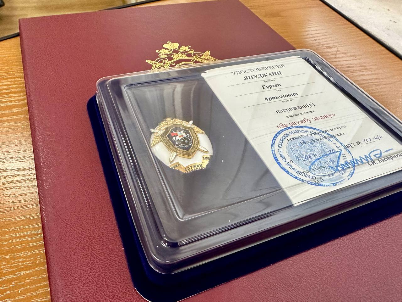 Также на заседании Д.Г. Канонеров по поручению Председателя СК России А.И. Бастрыкина вручил ведомственный знак отличия «За службу закону» руководителю отдела криминалистики полковнику юстиции Г.А. Япуджанцу.