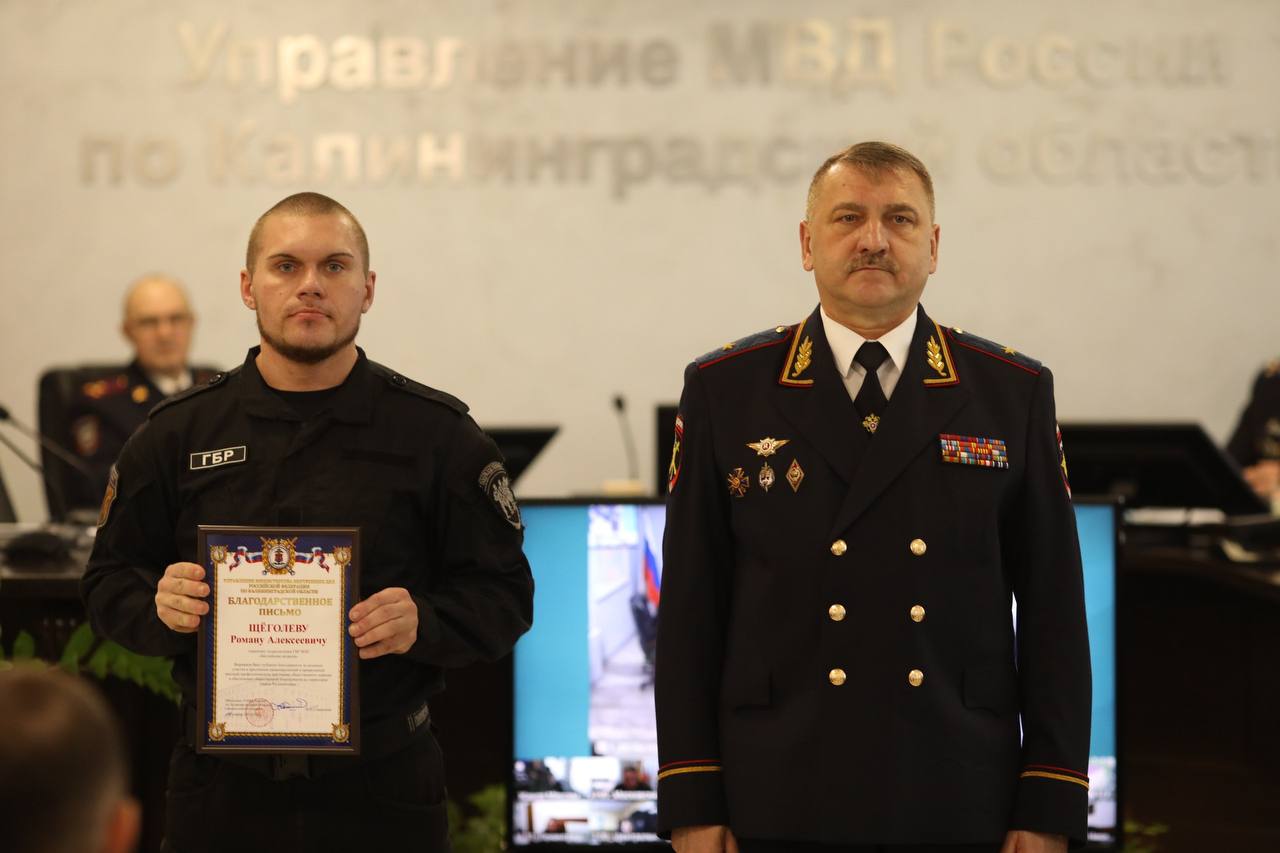 Начальник УМВД Александр Сокрутенко поблагодарил каждого сотрудника за добросовестную службу и вручил особо отличившимся ведомственные награды – Медали МВД России «За доблесть в службе», «За боевое содружество», «За безупречную службу в МВД», Медаль МВД России имени И.Д. Путилина, Почетные грамоты МВД России и Благодарности Министра внутренних дел Российской Федерации. За значительный вклад в укрепление законности и правопорядка на территории Калининградской области сотрудникам вручены почетные дипломы «Благодарность Губернатора Калининградской области», почетные грамоты Правительства Калининградской области и Законодательного собрания региона.