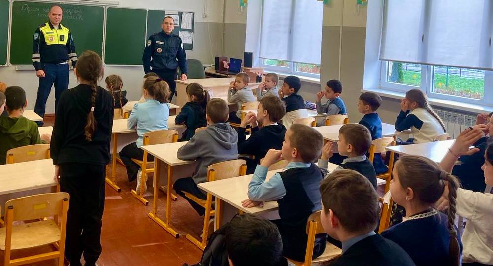 Сотрудники Госавтоинспекции провели урок дорожной безопасности с учениками младших классов средней школы пос.Свобода Черняховского района