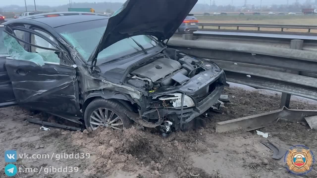 По предварительным данным, 4 декабря 2025 года в 8:05 на 13 км 500 м автодороги Северный обход города Калининграда 45-летний водитель автомобиля «Рено» при движении со стороны улицы Гагарина в направлении улицы Невского в результате взрыва колеса не справился с управлением, перестроился на левую полосу движения, где допустил столкновение с автомобилем «Вольво» под управлением 31-летнего водителя, который следовал попутно слева. От удара автомобиль «Вольво» отбросило на барьерное ограждение слева, автомобиль «Рено» допустил наезд на барьерное ограждение и световую мачту слева.
