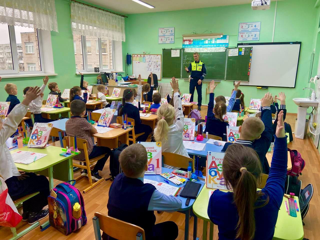 В средней школе № 5 города Черняховска с учениками младших классов автоинспектор провёл профилактическую беседу о Правилах дорожного движения