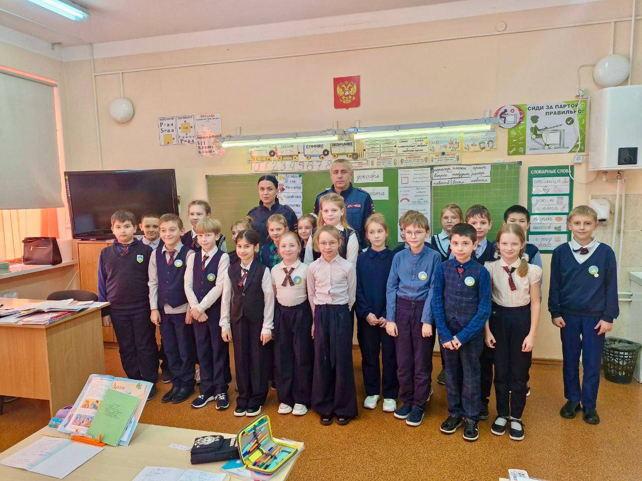 В СОШ имени Д. Тарасова г.Озерска инспекторы отделения Госавтоинспекции провели урок безопасности для учеников младших классов