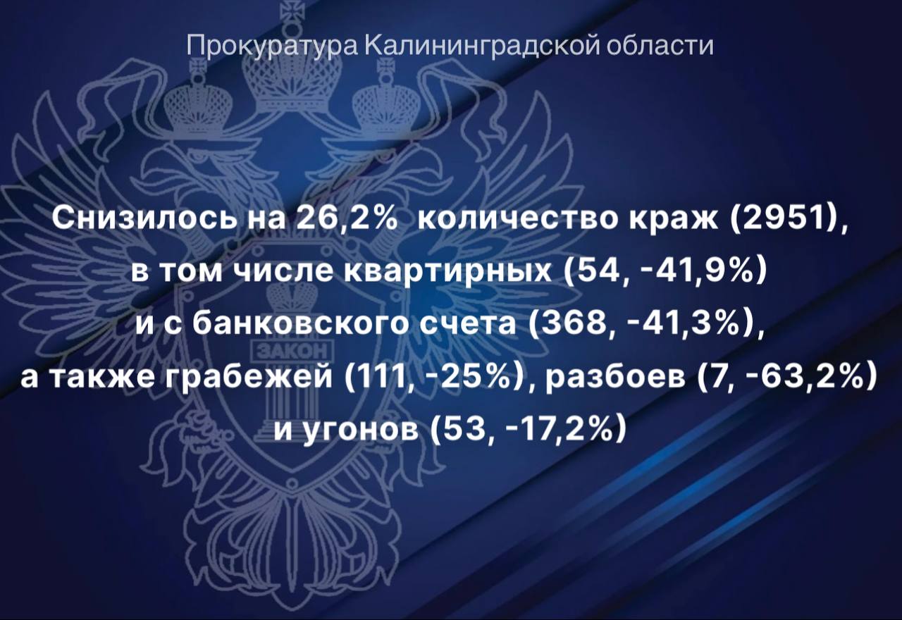 О состоянии преступности на территории Калининградской области за 11 месяцев 2025 года