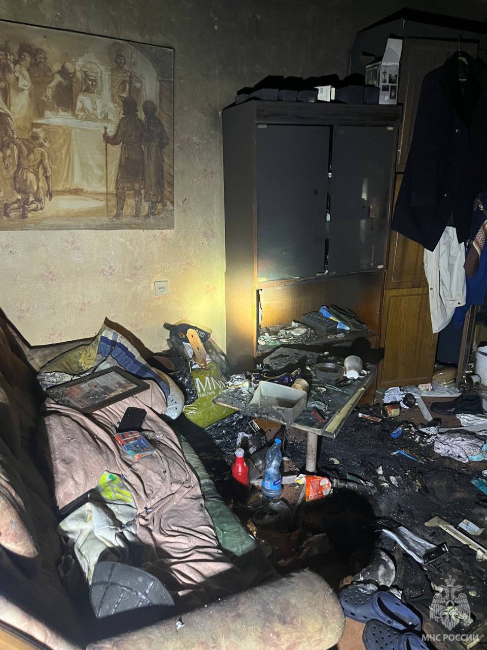 На улице Невского в комнате в одной из квартир на втором этаже горела ветошь. В результате возгорания квартира оказалась полностью закончена.