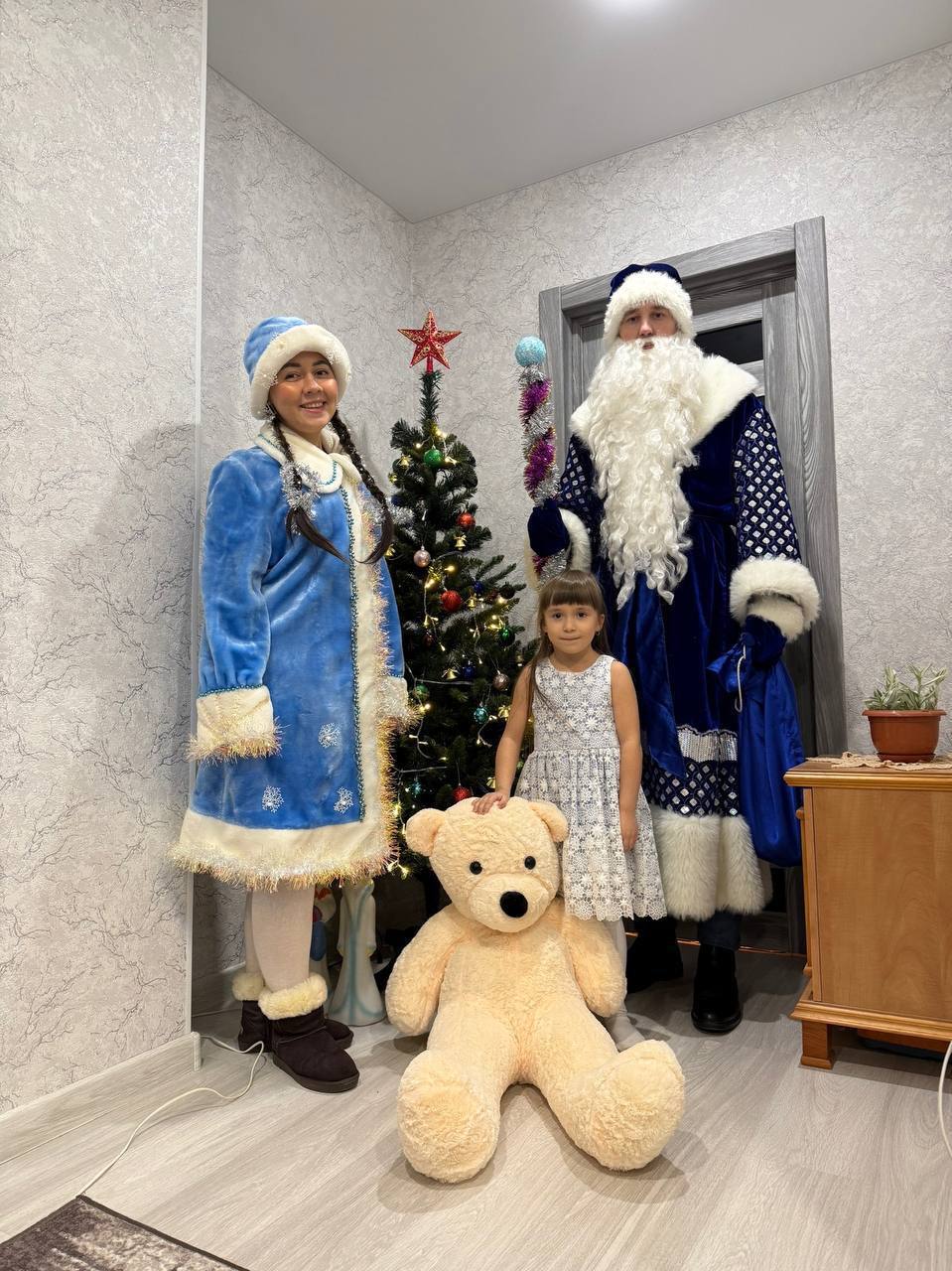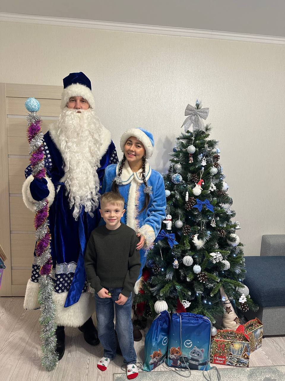 Ребята рассказали долгожданным гостям стихи, покружили хороводы вокруг новогодней ёлки и получили подарки. Дед Мороз и Снегурочка пожелали детям здоровья, хорошего настроения и успехов в учебе.