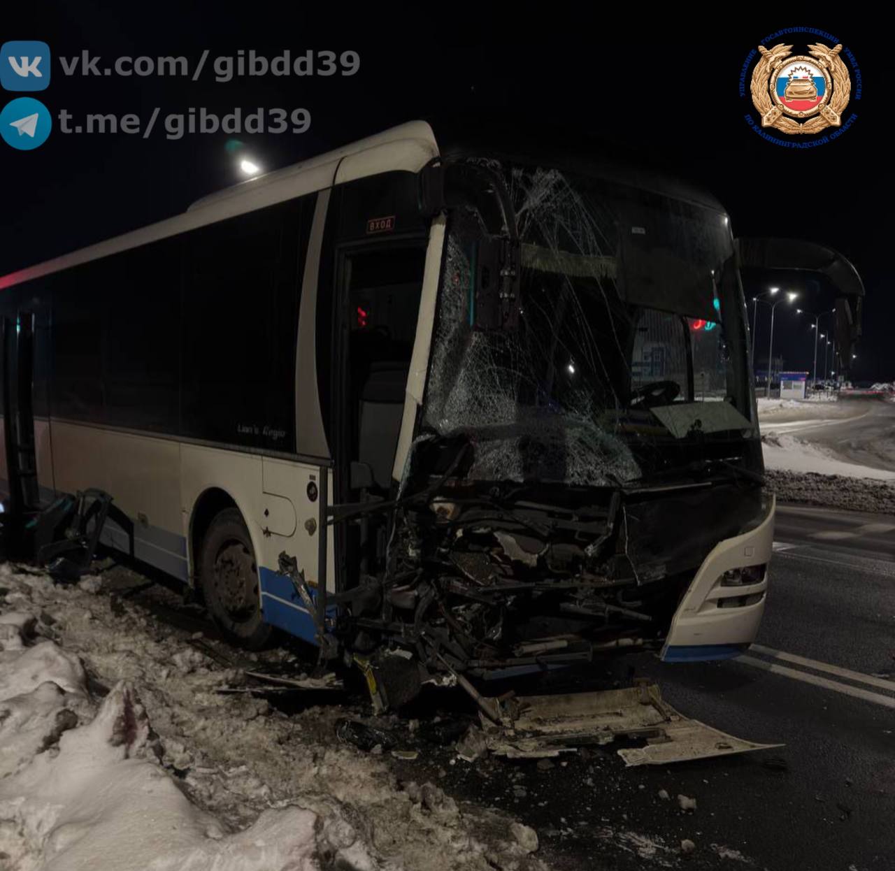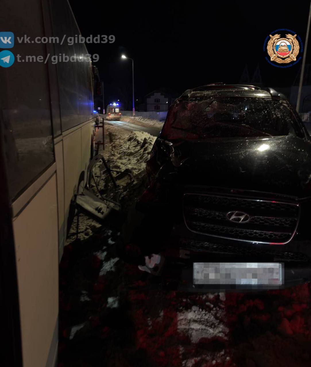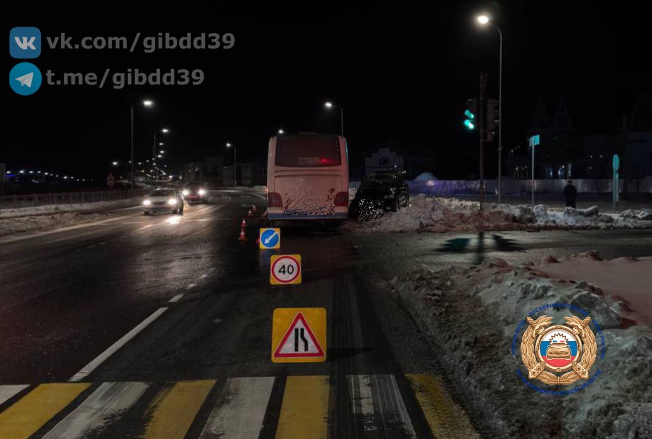 По оперативной информации, сегодня 16.01.2026 в 22:10 на автодороге «Романово - Калининград» (в районе пос. Холмогоровка) водитель 1982 года рождения, управляя автомобилем «Хендэ», при повороте налево, не уступил дорогу рейсовому автобусу, допустил с ним столкновение.