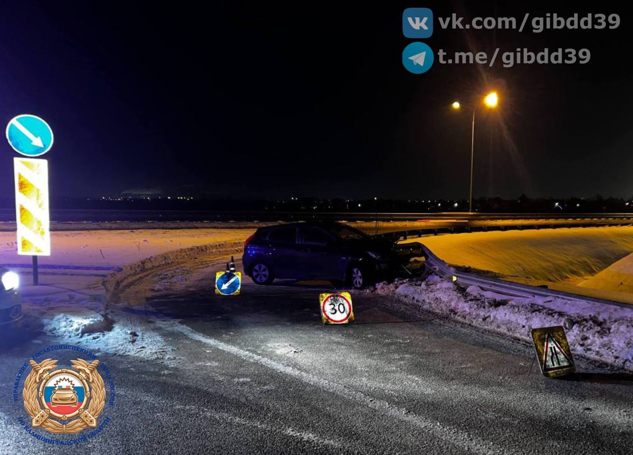 По предварительным данным, 19.01.2026 в 17:20 на 9 км + 100 м автодороги «Калининград-Черняховск-Нестеров-граница с Литовской Республикой» Гурьевского района, неустановленный водитель, управляя автомобилем марки «БМВ», при перестроении с крайней левой полосы в крайнюю правую, создал помеху в движении транспортному средству марки «Хендай» под управлением 19-летнего водителя, после чего водитель автомобиля «Хендай» не справился с управлением, допустив съезд с дороги с последующим наездом на дорожное ограждение справа по ходу движения.