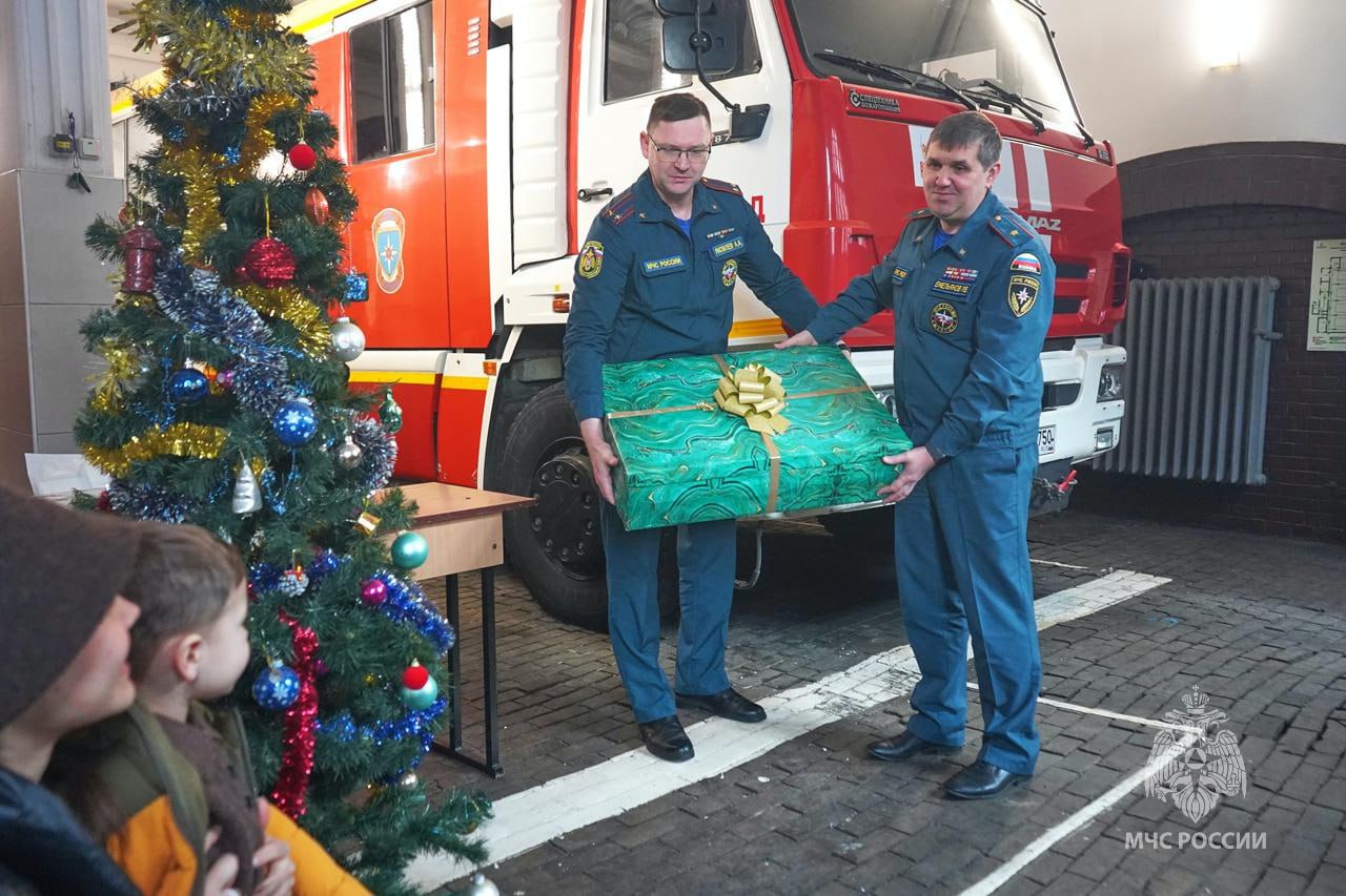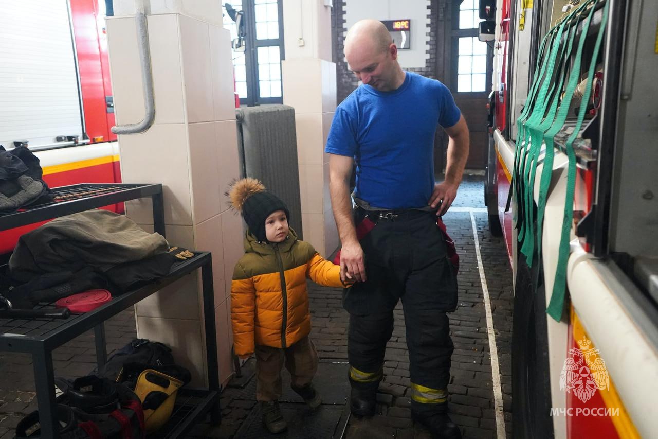 Бойцы подразделения провели для почётных детей экскурсию по историческому зданию депо, показали раритеты пожарно-технической выставки, познакомили со штатным оборудованием спецавтомобиля. Коронным номером праздничной программы стал выезд Роберта в кабине пожарной машины. Он прокатился по городу и смог увидеть знакомые улицы глазами огнеборцев, которые спешат на выезд.