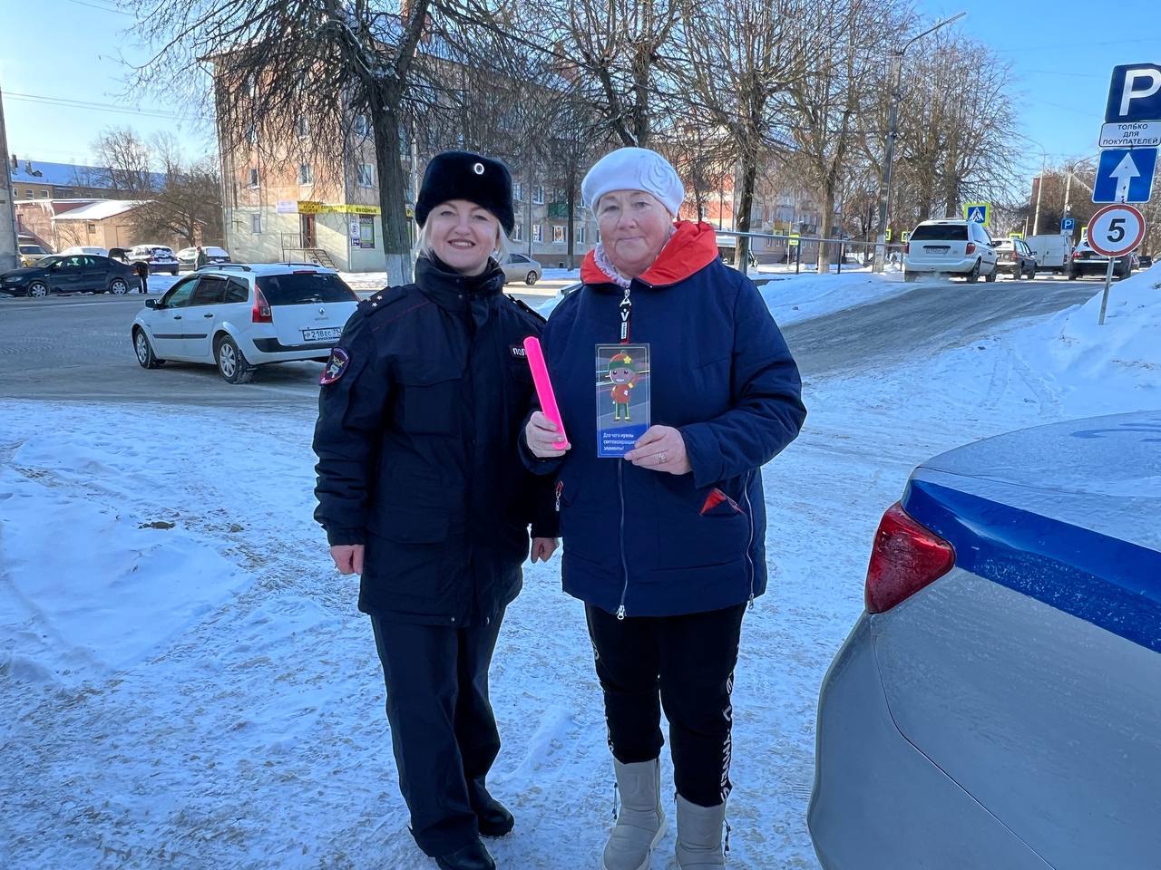 Чтобы сделать путь пешеходов более безопасным, сотрудники ведомства вручали участникам акции информационные памятки и световозвращающие браслеты. Такие аксессуары помогают водителям заранее заметить человека на дороге в темное время суток или в условиях плохой видимости.
