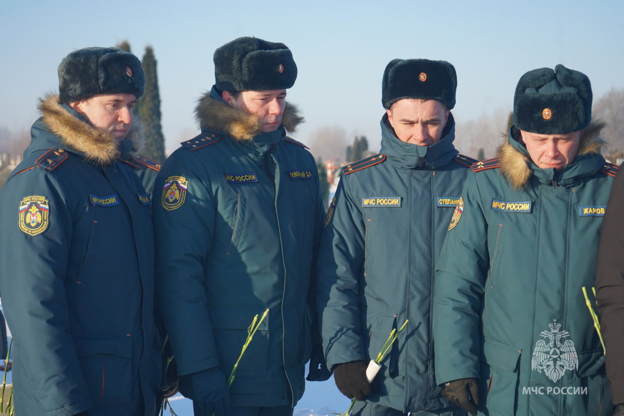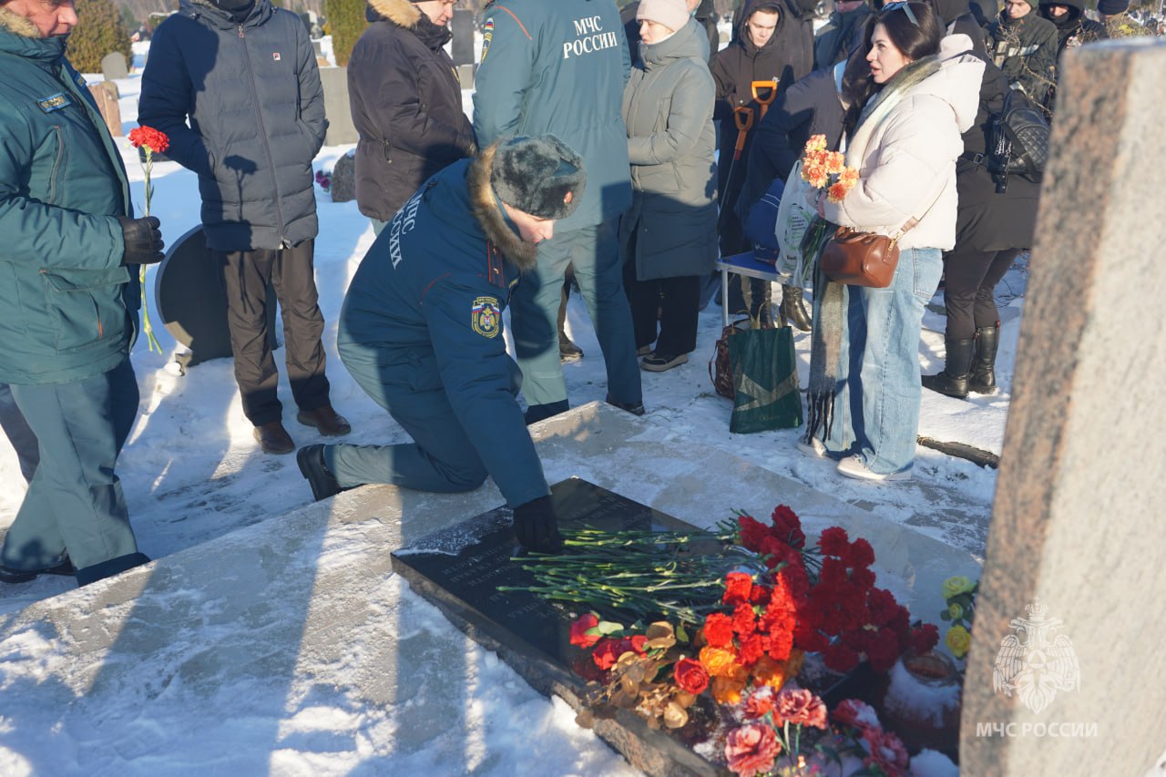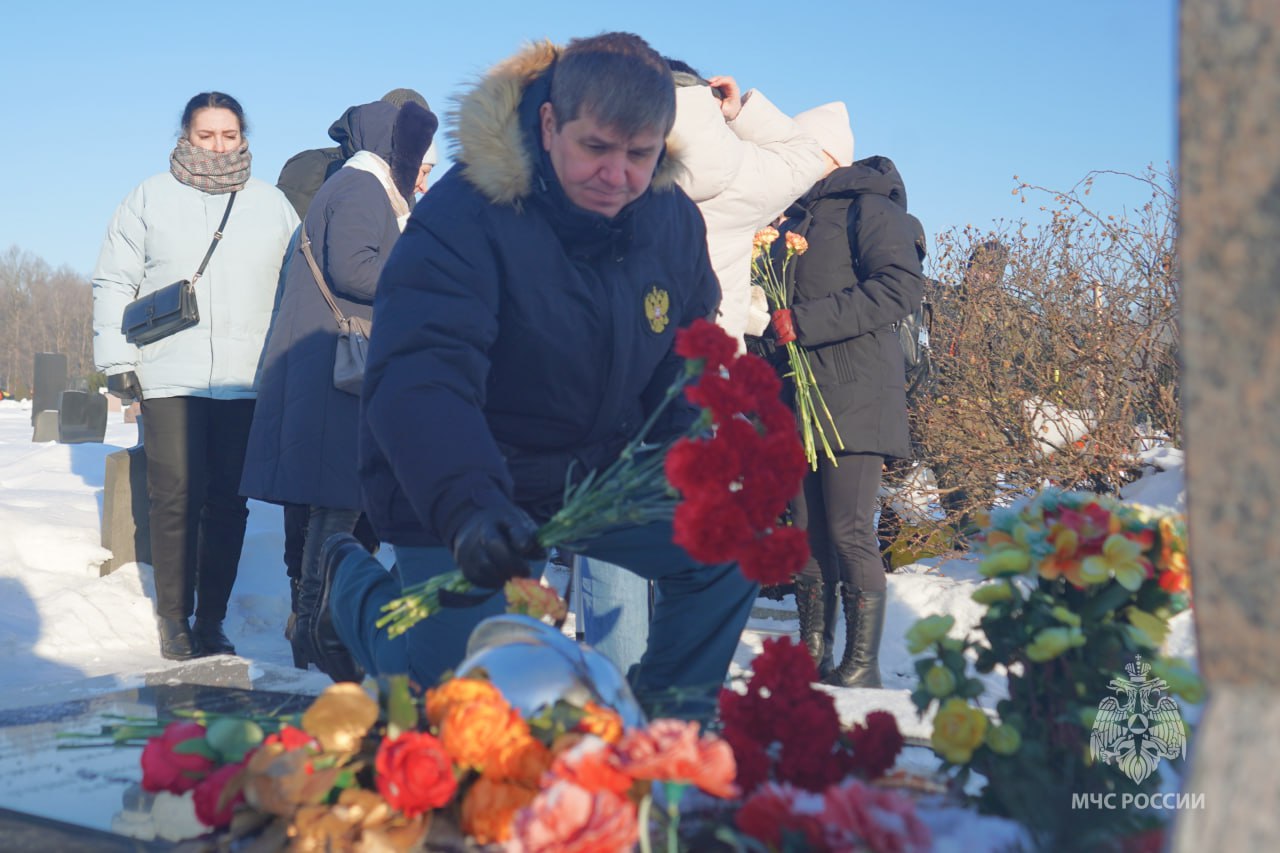 Сегодня сотрудники МЧС России во главе с начальником Главного управления Романом Емельяновым почтили память товарища и возложили цветы на Цветковском кладбище.