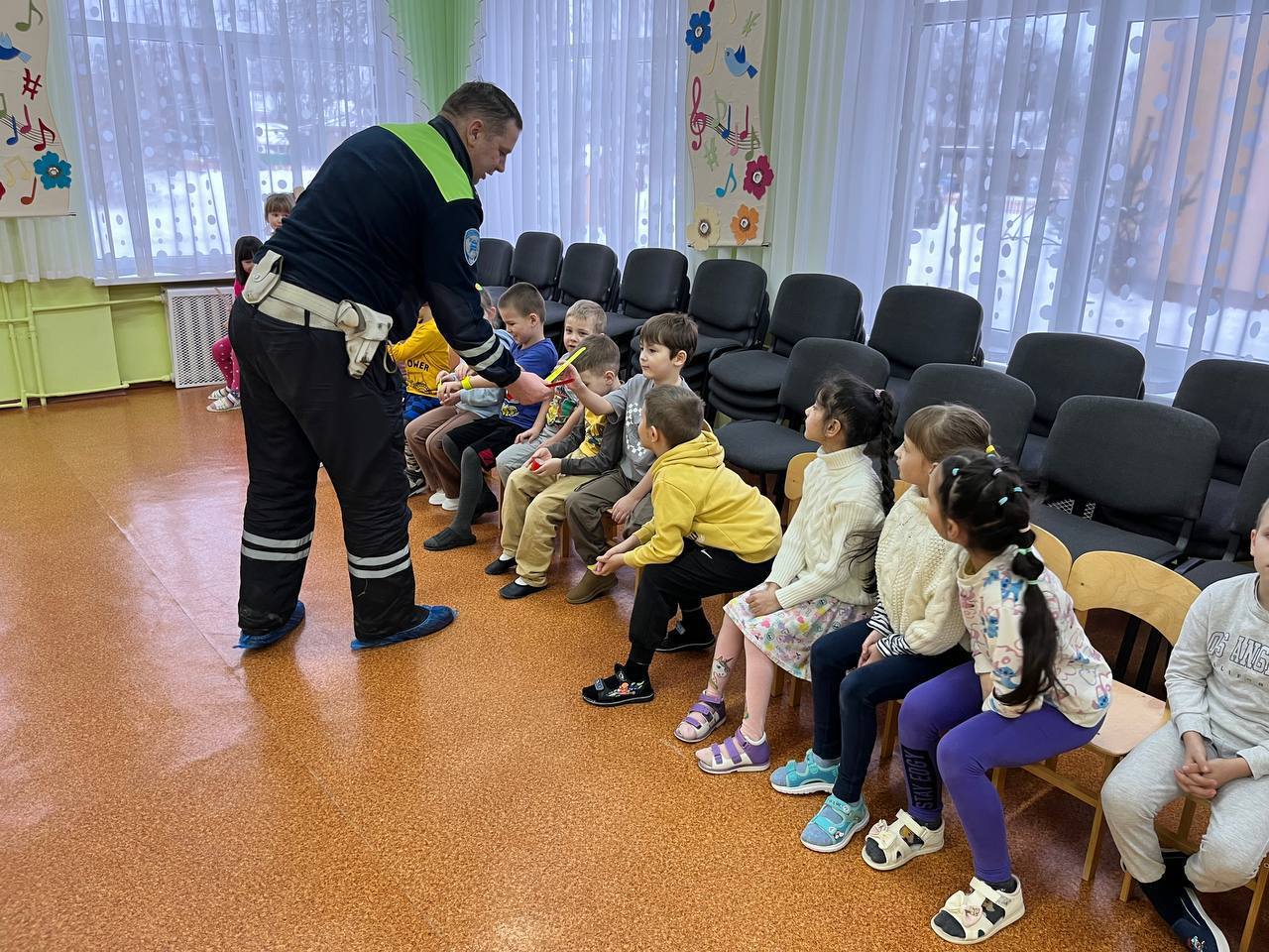 В ходе встречи инспекторы в доступной и игровой форме рассказали воспитанникам детского сада об основных правилах дорожного движения, объяснили значение дорожных знаков, напомнили, как правильно переходить улицу и почему важно всегда быть внимательным даже на знакомых маршрутах.