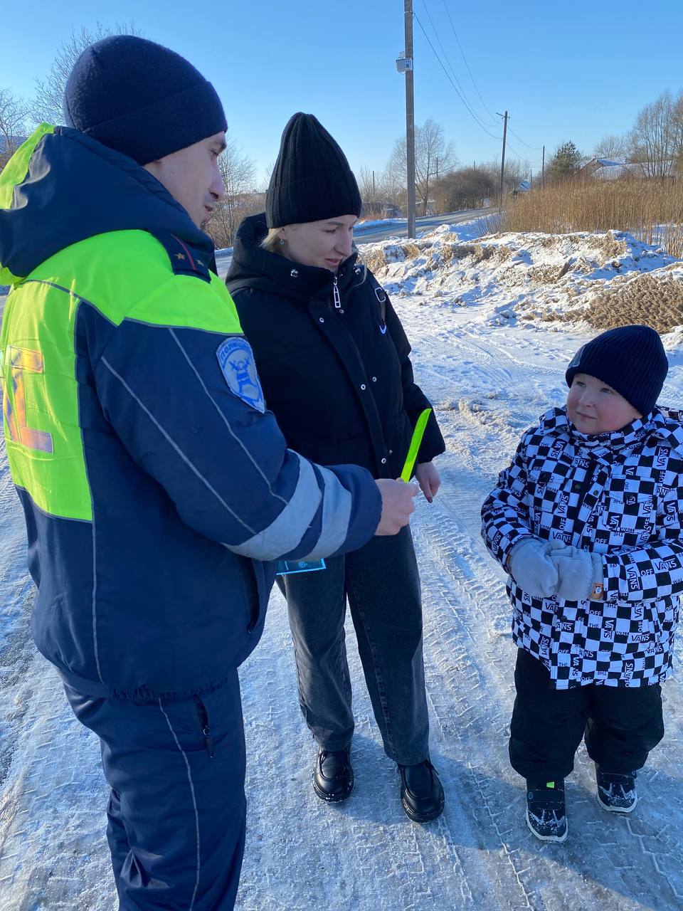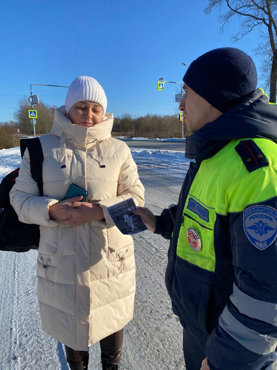 Сотрудники полиции раздали детям и взрослым информационные памятки с правилами безопасного поведения на дорогах, а также световозвращающие элементы - браслеты, которые помогают водителям вовремя заметить пешехода.