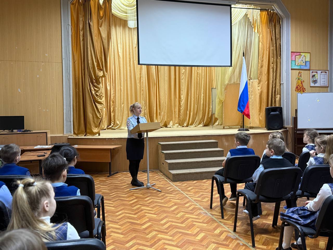 Слушателями лекций стали ученики 1-х и 4-х классов. Встреча прошла в формате живого диалога, где инспекторы напомнили ребятам основные правила безопасного поведения на улицах города.