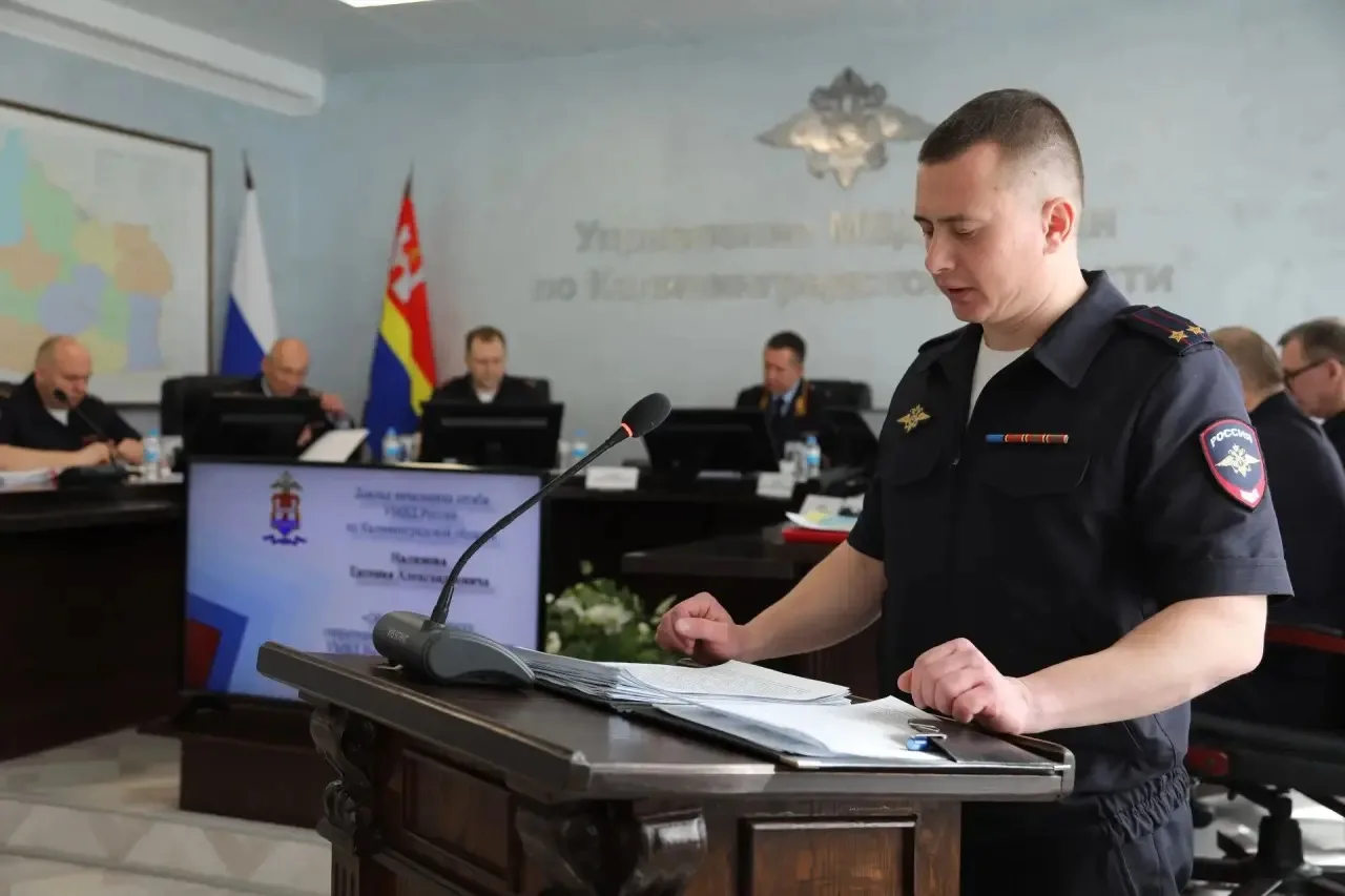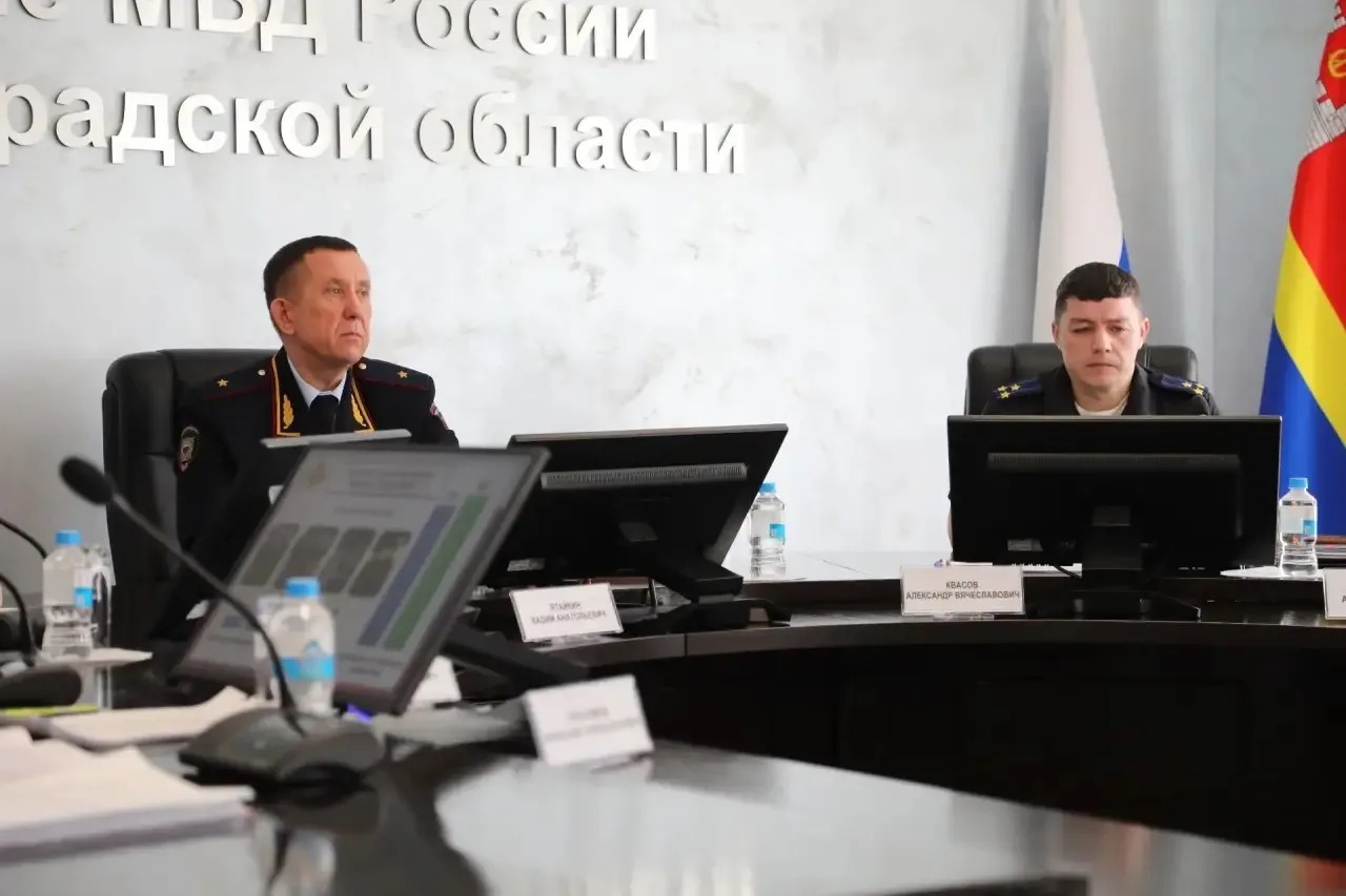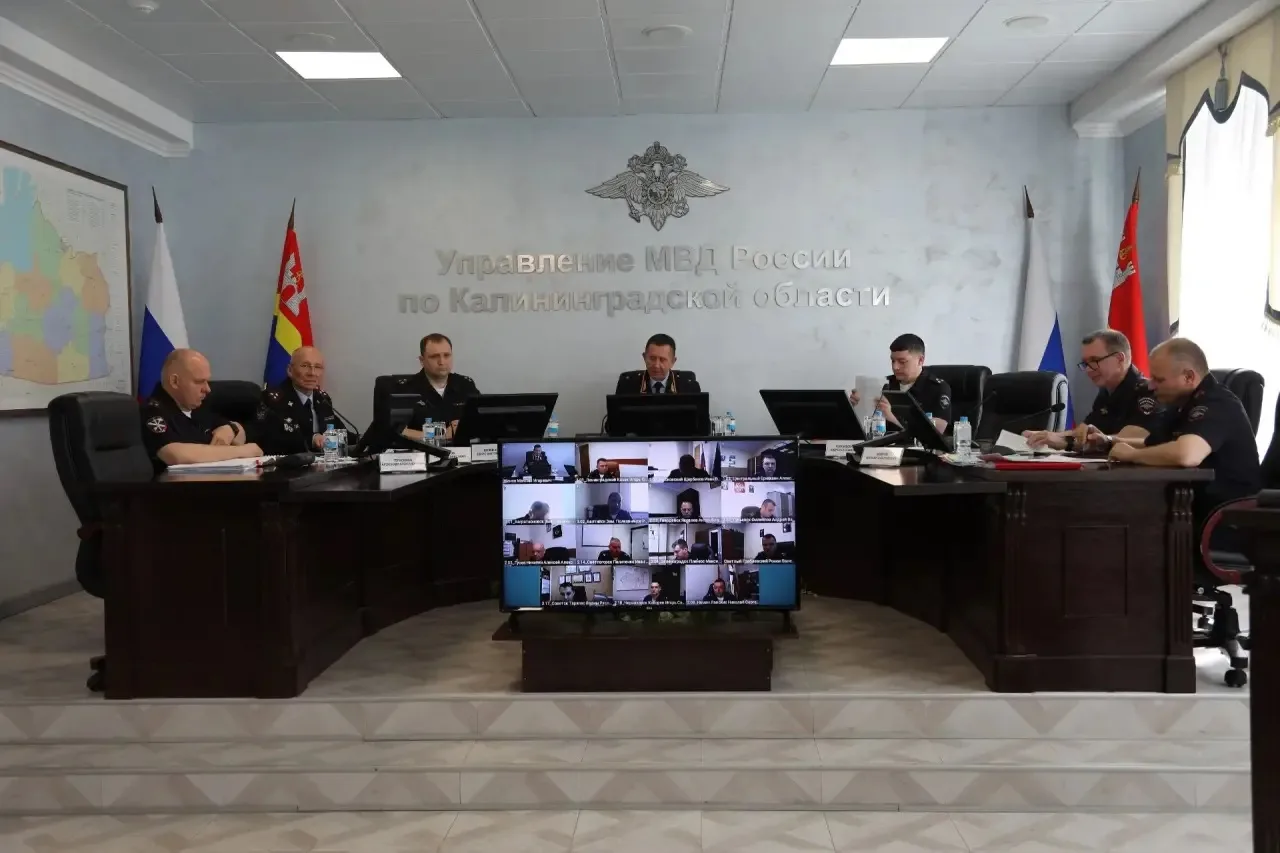 В УМВД России по Калининградской области состоялось заседание коллегии по результатам оперативно-служебной деятельности сотрудников полиции за первый квартал 2026 года. Мероприятие прошло под председательством генерал-майора полиции Вадима Ятайкина. Участие в заседании принял начальник Западного Линейного Управления МВД России на транспорте Сергей Титов, а также заместители начальника УМВД, руководители подразделений аппарата Управления и территориальных отделов внутренних дел на районном уровне.