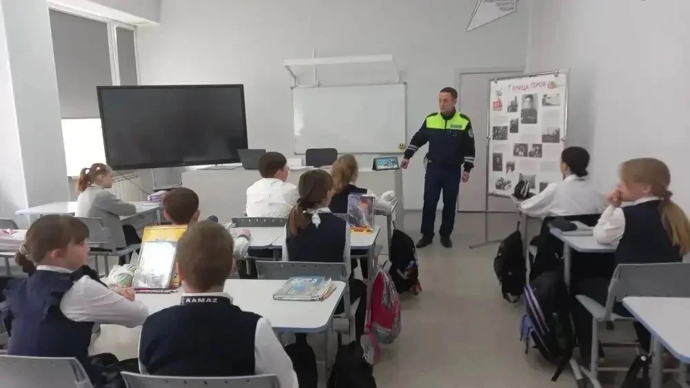 Инспектор ДПС отделения Госавтоинспекции МО МВД России "Черняховский" провёл беседу с учениками школы поселка Ново-Гурьевское