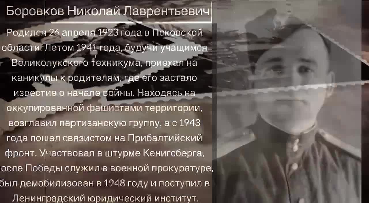 Боровков Николай Лаврентьевич – участник Великой Отечественной войны, участник штурма Кенигсберга, связист на Прибалтийском фронте. Неманский межрайонный прокурор, прокурор Октябрьского района города Калининграда.