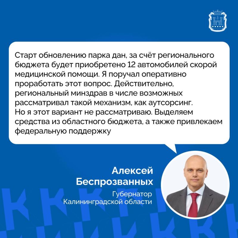 По решению губернатора Алексея Беспрозванных приобретём двенадцать новых автомобилей.Сейчас автопарк станции скорой помощи насчитывает 122 машины.Подробнее – по ссылке. Правительство Калининградской области |...