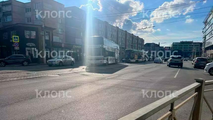 На Черняховского туристический автобус «встретился» с трамваем, движение рельсовых испытывает трудности