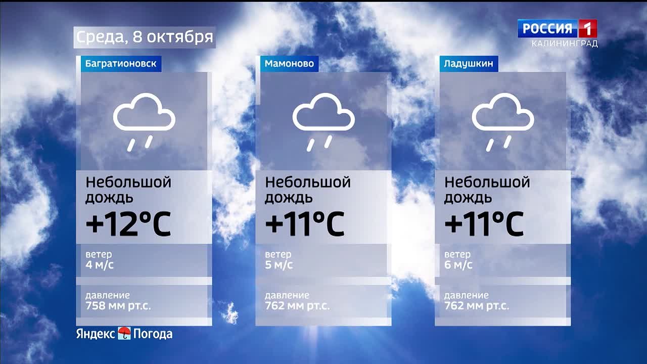 Доброе утро, друзья!Днём в Калининградской области ожидается +11…+15°C, преимущественно облачная погода и дожди, особенно во второй половине дня.Ветер южный и юго-западный, к вечеру сменится на западный.В регионе — от слабого до умеренного...