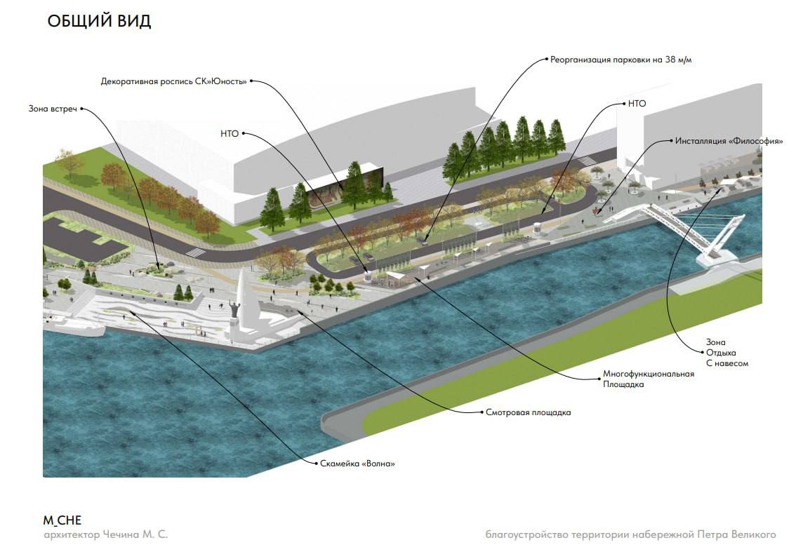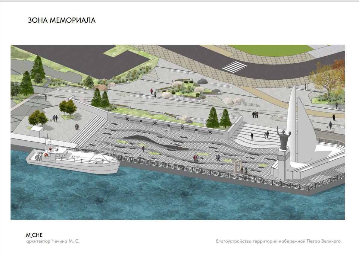 Победителю аукциона предстоит заняться территорией около памятного знака рыбакам-пионерам океанического лова. Нужно будет установить архитектурную подсветку, волнообразную скамейку и посадить сакуры.