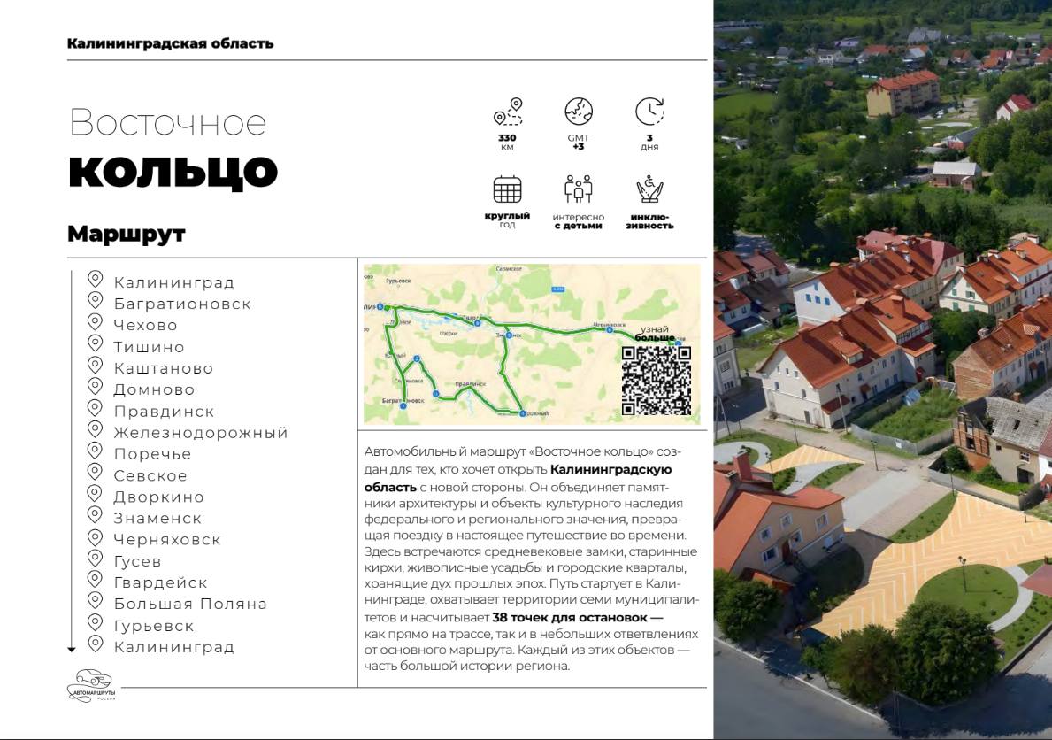 Предлагают передвигаться преимущественно по Багратионовскому, Правдинскому и Черняховскому районам, а именно: Чехово – Тишино – Домново – Правдинск – Железнодорожный – Поречье – Севское – Дворкино – Знаменск – Черняховск.