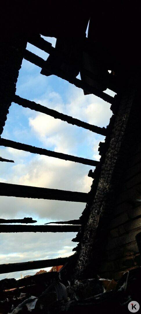 Дом, где случился пожар, не частный: он разделён на четыре квартиры. На соседские огонь, к счастью, не перекинулся, люди успели выйти на улицу. Но имущество пропало: от чердака остались обугленные головешки, в черепичной кровле зияет дыра, мебель и техника испорчены.
