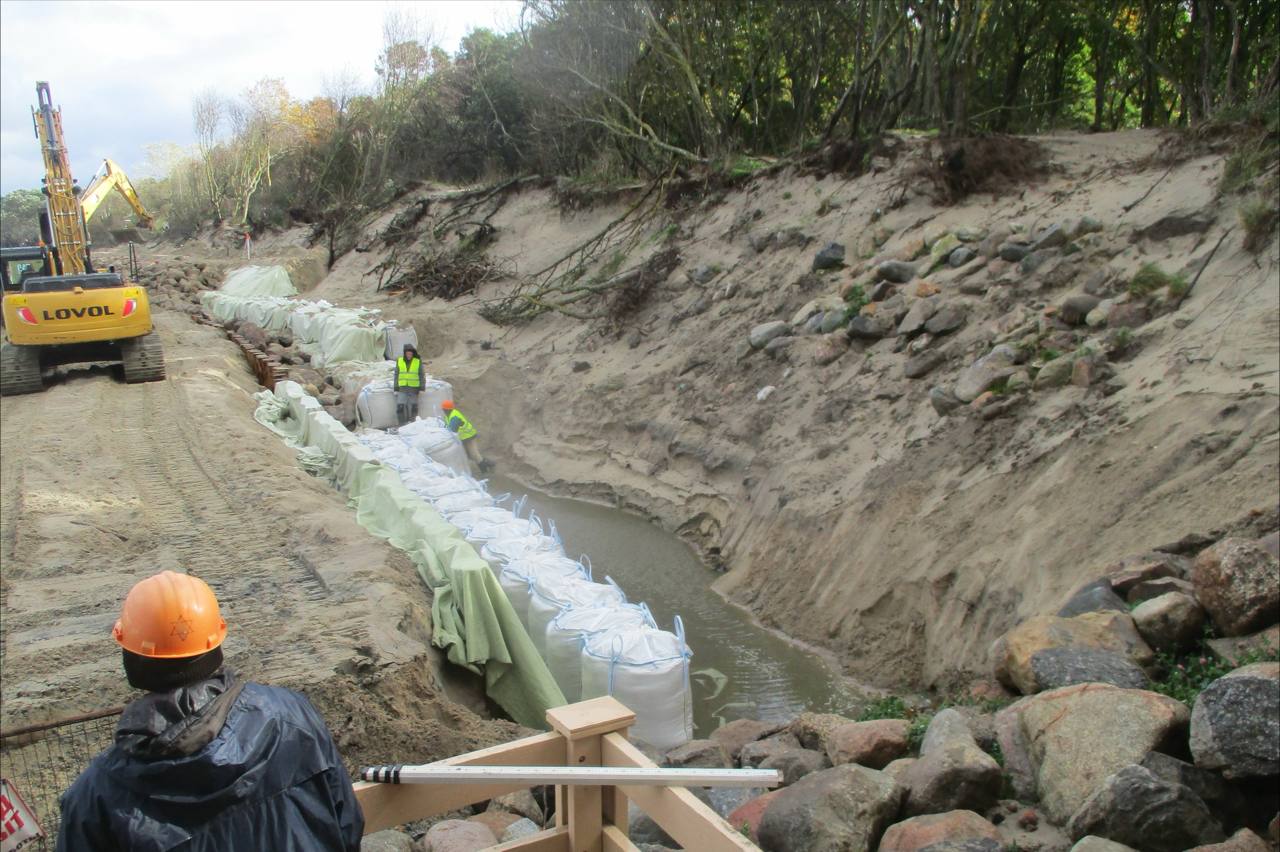 Техническую готовность сооружений оценили в 85%. «Установили 100% деревянных свай упорного полупроницаемого ряда. На 420 метрах уложено непроницаемое ядро из „гео-бэгов“ с волногасящей внешней защитной бермой из крупногабаритного камня», — рассказали в «Балтберегозащите».