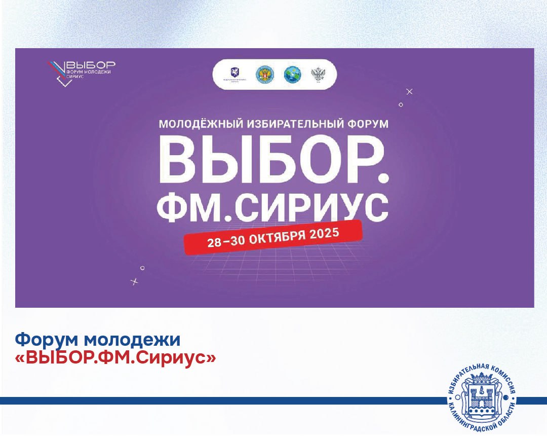 Молодежный избирательный форум «Выбор.ФМ. Сириус» пройдет с 28 по 30 октября на федеральной территории «Сириус». Форум организован территориальной избирательной комиссией ФТ «Сириус» совместно с ЦИК России, Российским фондом свободных выборов, а также избирательными комиссиями ЛНР, ДНР, Херсонской и Запорожской областей при содействии Образовательного Фонда «Талант и успех».