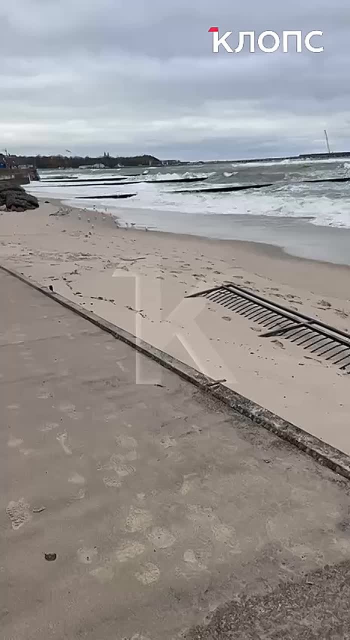 На пляже в Пионерском стихия снесла металлическое ограждение