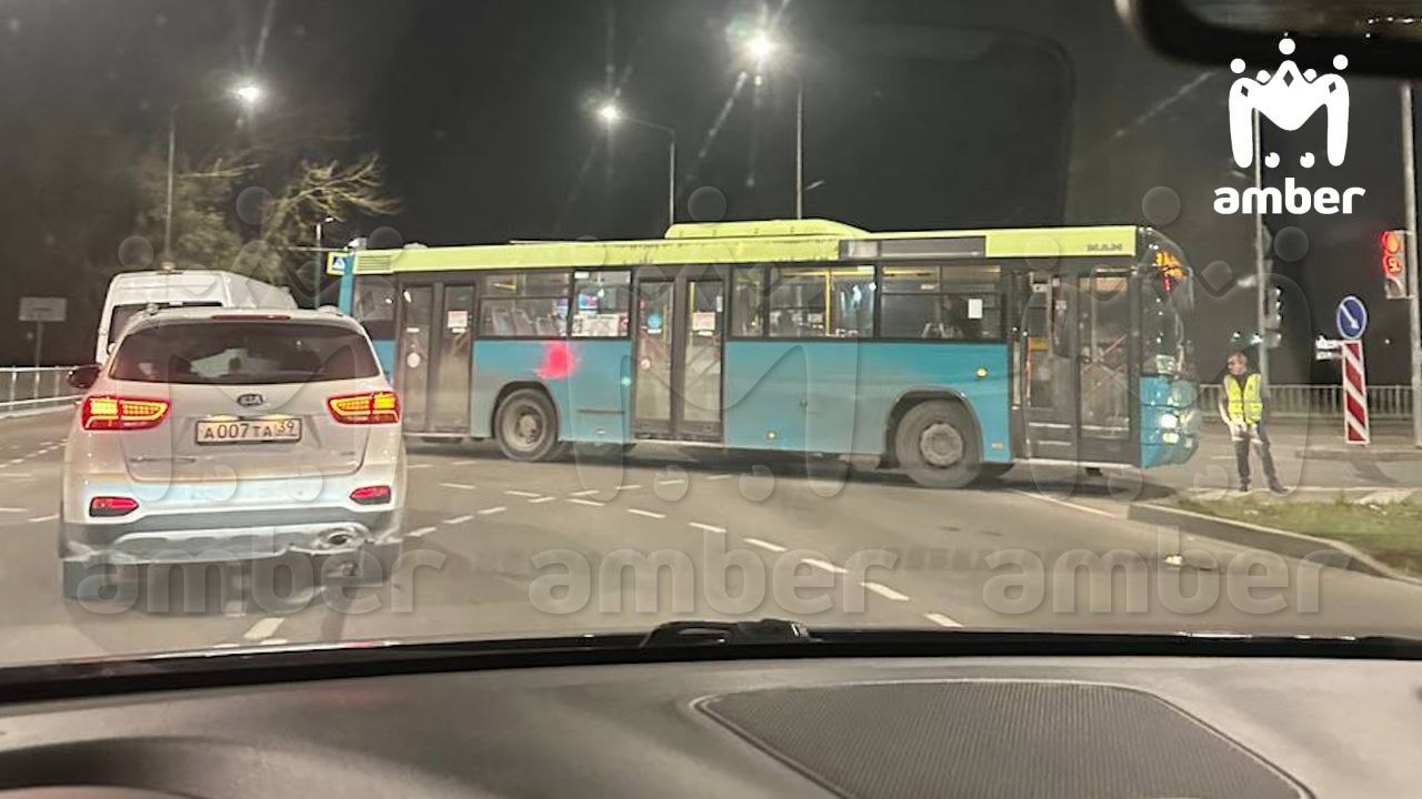 Пробка собралась на обеих улицах. По словам очевидцев, автобус прижал легковушку. Предварительно, никто не пострадал.