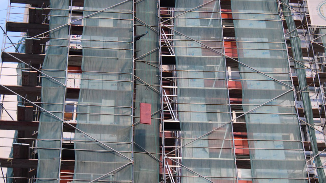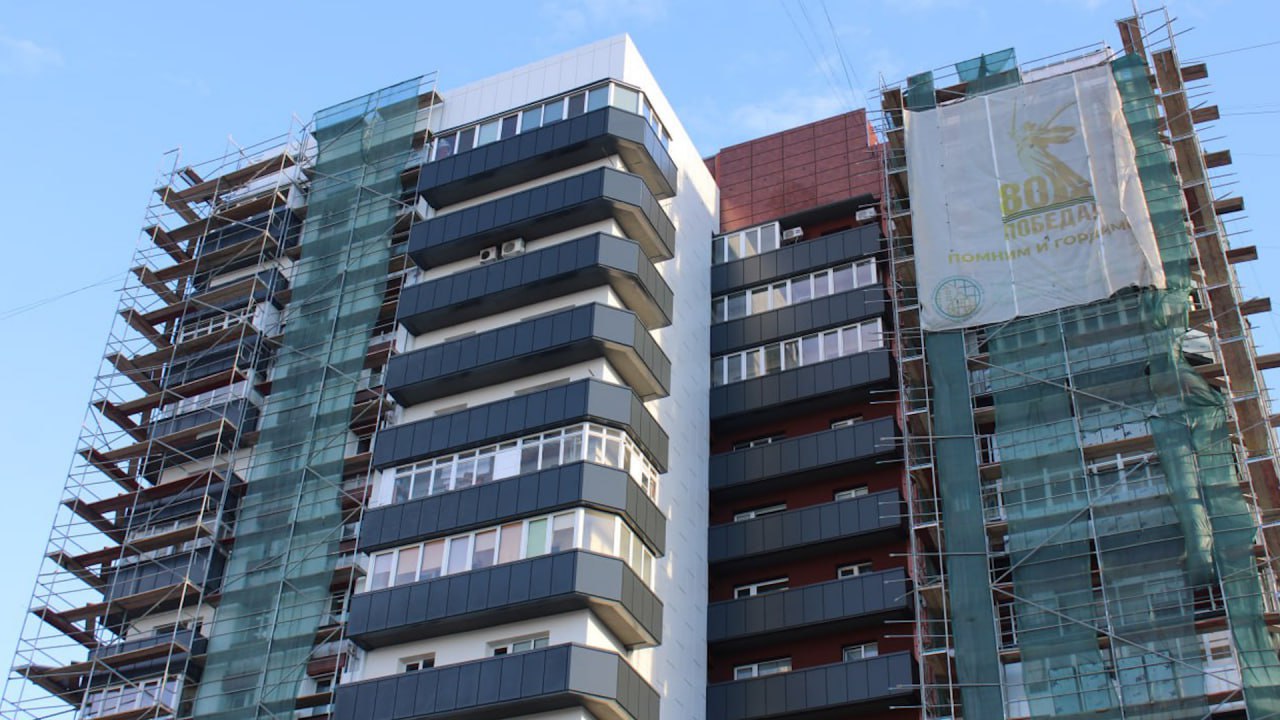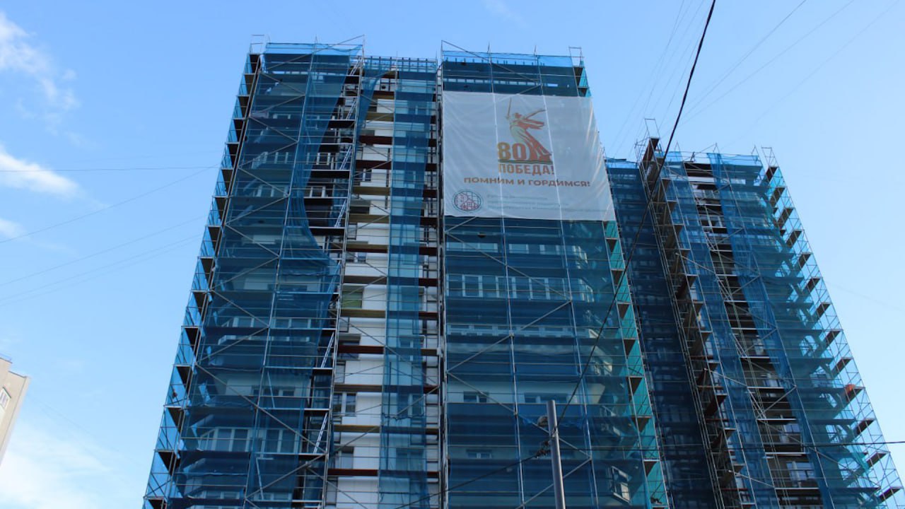 На доме по улице Фрунзе, 73-75 большая часть вентфасада готова. Новая система утепления уже работает на то, чтобы сохранять тепло внутри дома. Сейчас монтируют панели в текстуре кортеновской стали.