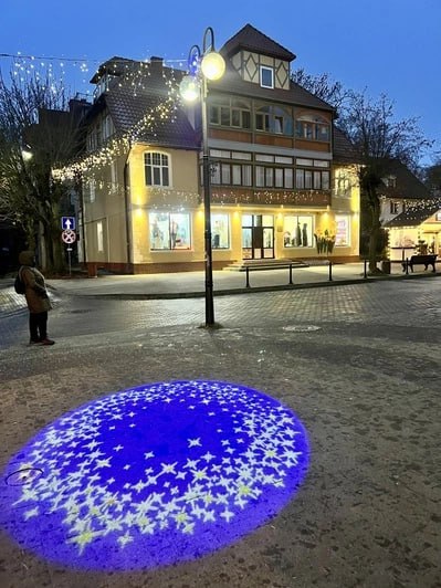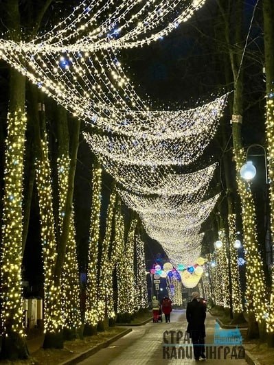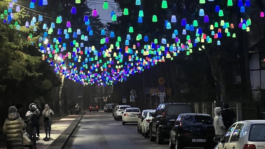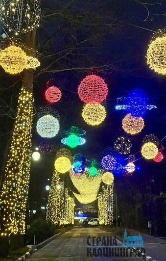 В Светлогорске уже украсили улицы, и таких на этот раз намного больше. Новой локацией для прогулок и фото стала улица Курортная около башни грязелечебницы. Гирлянды покрывают почти всю территорию — получилось волшебно. Всего в Светлогорске повесили 30 тысяч метров гирлянд.