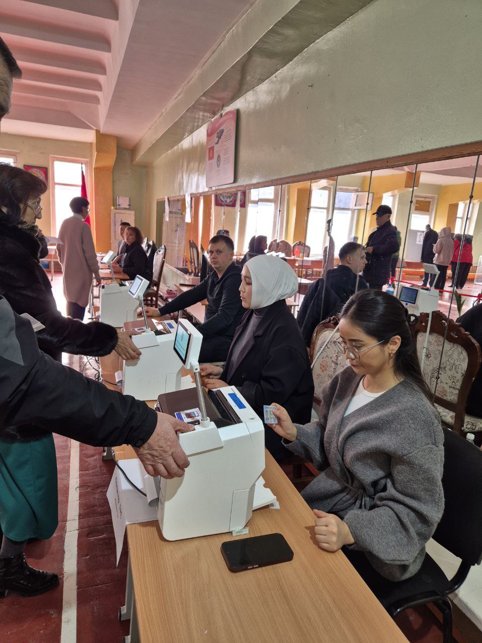 ЦИК республики активно использует в процессе голосования цифровые технологии. Гражданин может прийти на любой удобный для него участок и заполнить бюллетень вне зависимости от того, где конкретно прописан. Это очень удобно для внутренних мигрантов и кыргызстанцев, выехавших за рубеж. Паспорт с собой иметь не обязательно. Его может заменить смартфон с мобильным приложением кыргызских госуслуг ("Тундук"), которое позволит идентифицировать избирателя по QR-коду.