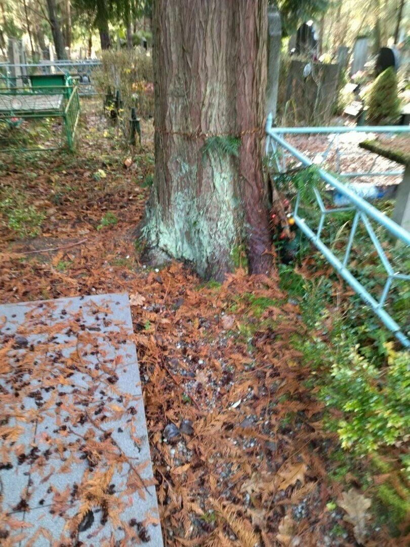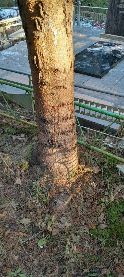 По словам Валентины, на кладбище могут вскоре рухнуть ещё несколько деревьев. Рядом находятся туи, у которых кто-то надпилил кору.