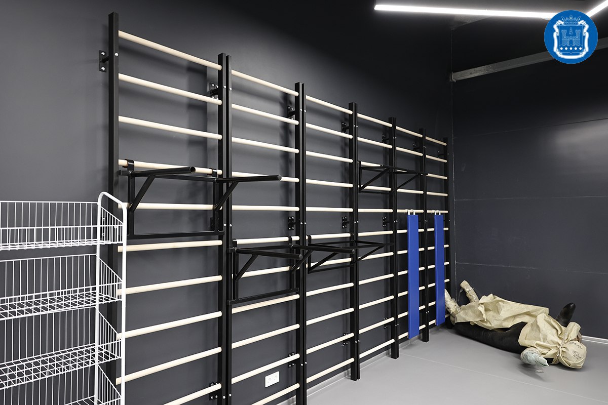 Здесь оборудовали универсальный спортзал, тренажёрный и танцевальный залы, специализированные помещения для бокса и борьбы.