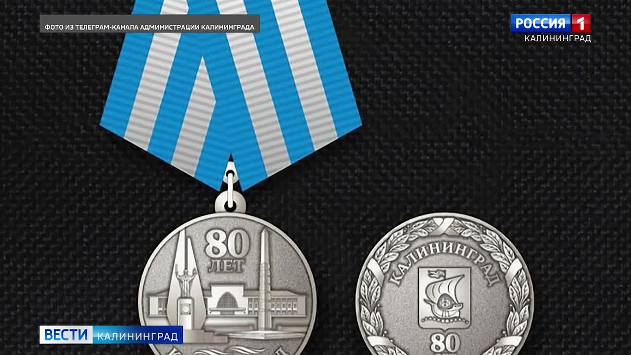 Эти символы Калининграда составляют композицию на лицевой части медали к 80-летию региона. Эскиз представила пресс-служба мэрии.