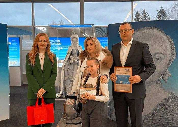 Девочку вместе с её мамой поздравили гендиректор Храброво Александр Корытный и представитель Nordwind Ольга Ваврищук. Дарине вручили памятные сувениры и сертификат на бесплатное обслуживание в бизнесзале аэропорта.