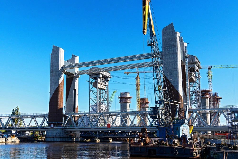 Строительство масштабного объекта началось еще в 2021 году. Длина нового моста составила более 234 метров, а его конструкцию удерживают четыре железобетонные опоры и три металлических пролета. Особенностью сооружения является подъемный механизм, который позволяет поднимать центральный пролёт массой 880 тонн на высоту почти 25 метров, обеспечивая беспрепятственный проход крупногабаритных судов по реке Преголе.