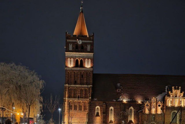 «С подсветкой и обновлённым шпилем»: на кирхе в центре Правдинска завершили ремонт смотровой площадки.