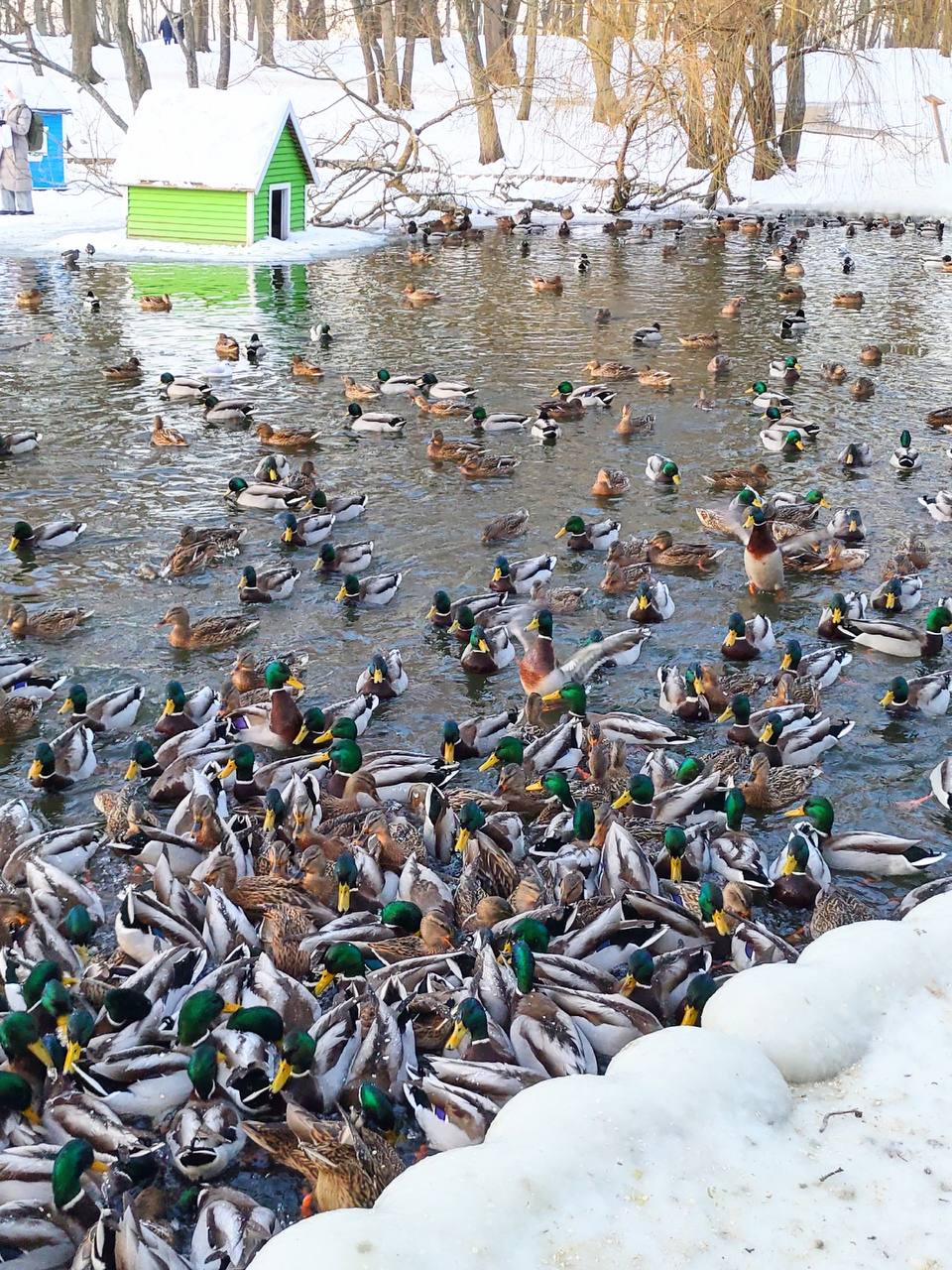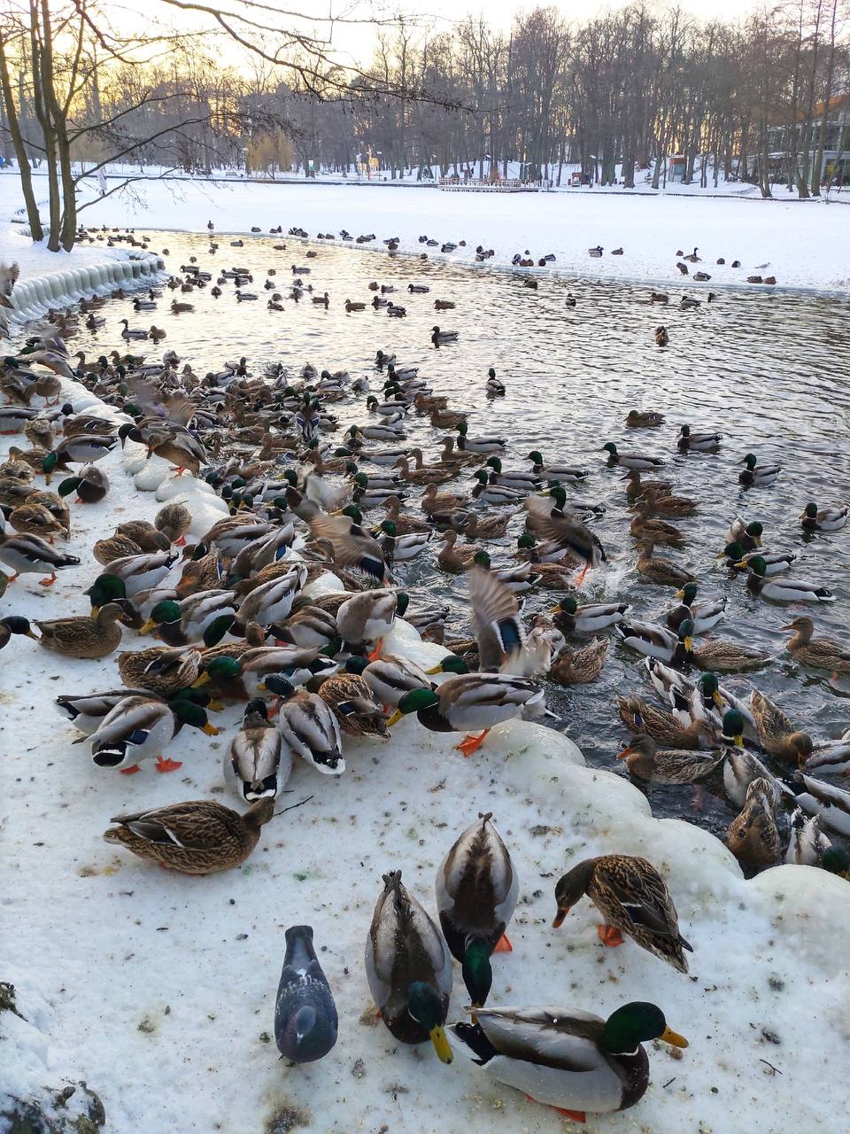 Появление такой своеобразной птичьей коммуналки в Зеленоградске неслучайно. Для комфортного пребывания пернатых необходимы три ключевых условия: наличие незамерзающей воды, тихое и спокойное место, а также доступ к пище.