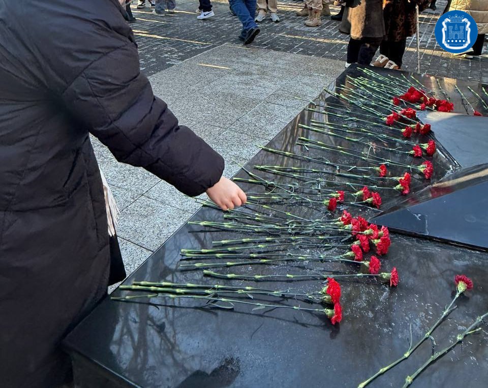 Жители округа и представители администрации почтили память погибших воинов минутой молчания и возложили цветы к Вечному огню.
