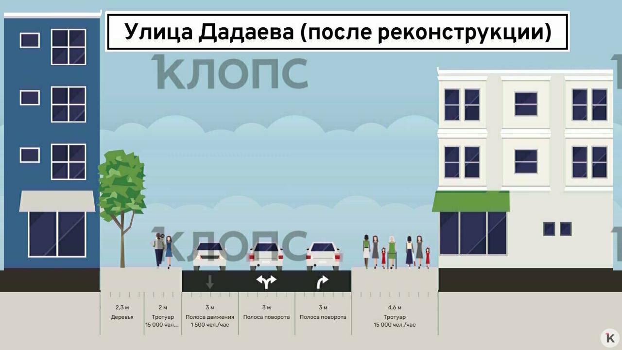 После реконструкции выезд с улицы Дадаева будет двухполосным, а припарковаться у магазинов и банка получится только с улицы Невского.