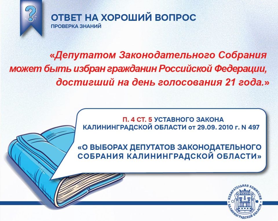 Ответ на вопрос, который мы опубликовали утром. Спасибо всем, кто проверил свои знания. #Избирком_39_вопрос Облизбирком в мессенджере MAX